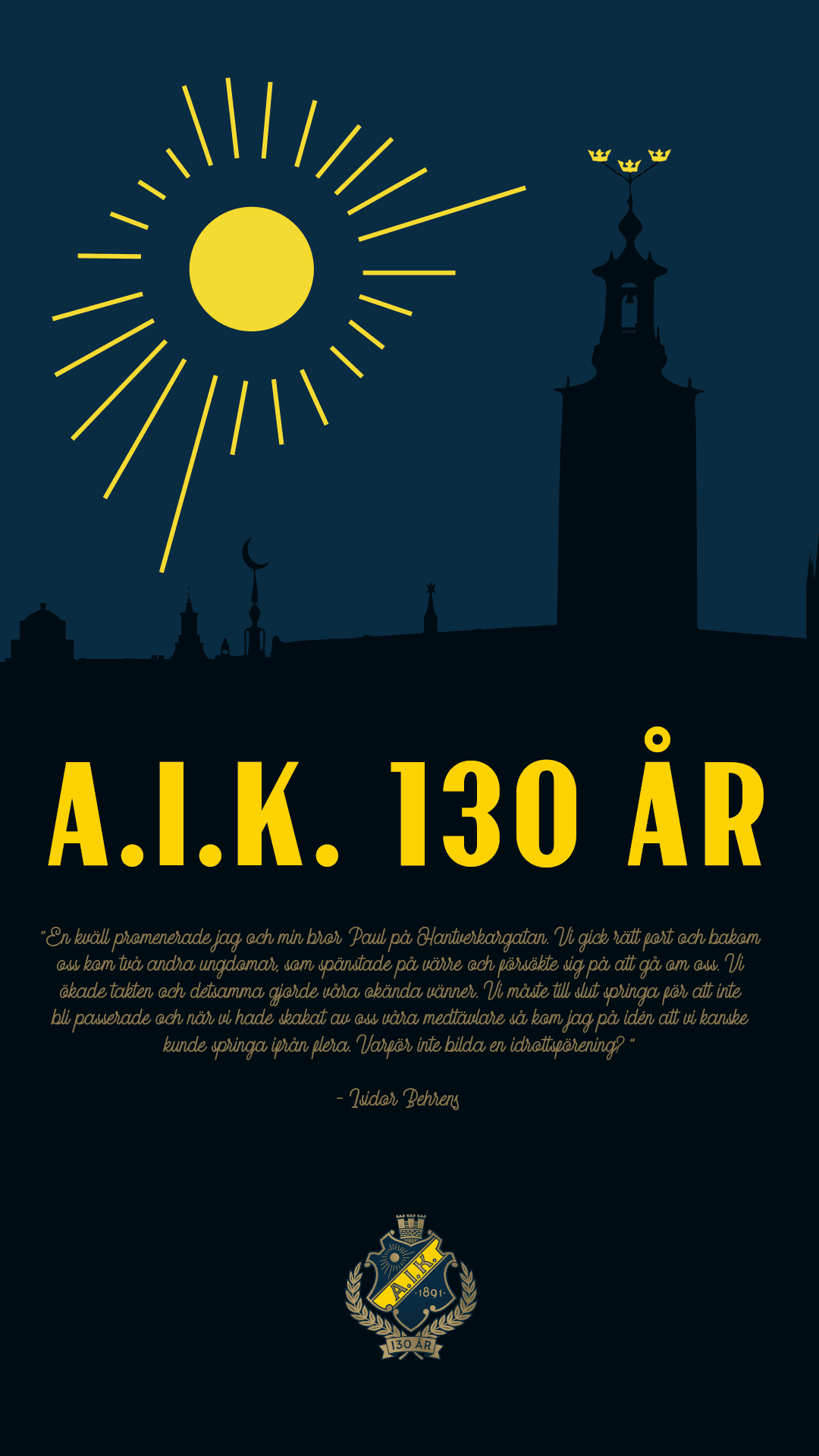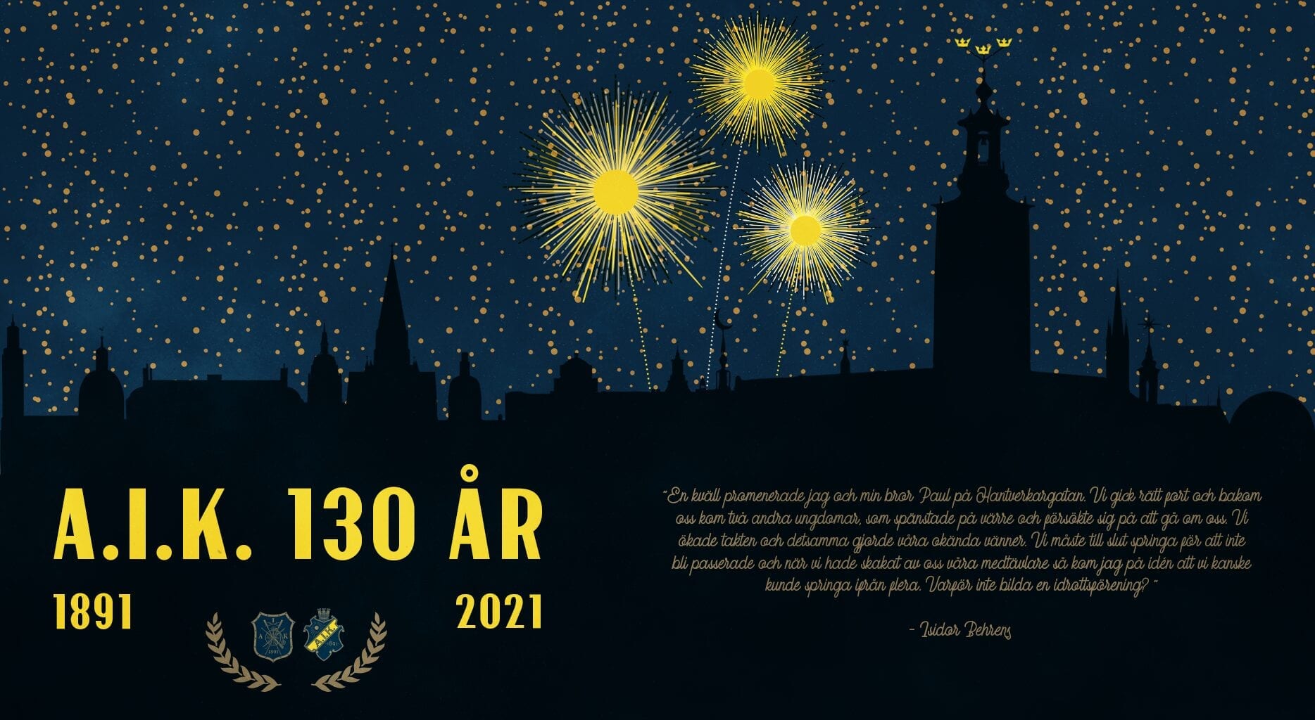 15 februari 1891 bildades Allmänna Idrottsklubben av Isidor Behrens, varför AIK under år 2021 firar 130 fantastiska år.