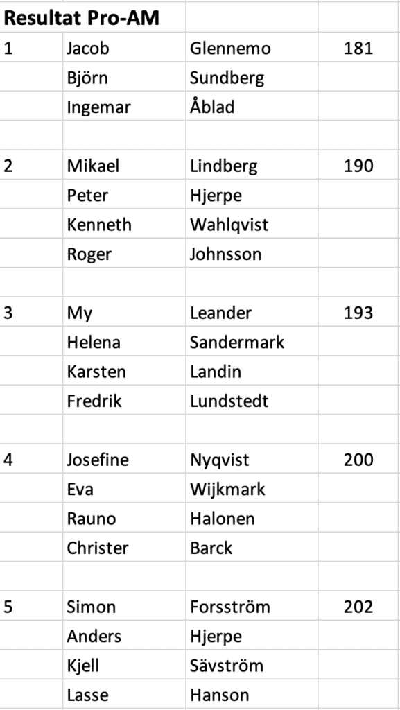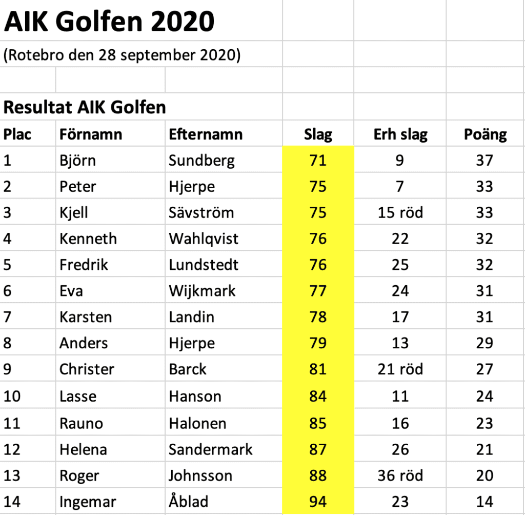 … men det stannar inte där. Igår – måndagen den 28 september – fick deltagarna i AIK Golfen vara med om något väldigt ovanligt. Två av de dessa deltagare hade dessutom ynnesten att på nära håll få bevittna Jacob Glennemos prestation då han efter en bogey, sex par, åtta birdies och tre eagles noterades för 59 slag på Rotebros nästan 6000 meter långa och ganska svåra bana. De som svarat för bedriften att spräcka drömgränsen är inte så många. Det är Glennemo, Sörenstam, Dantorp och några till……