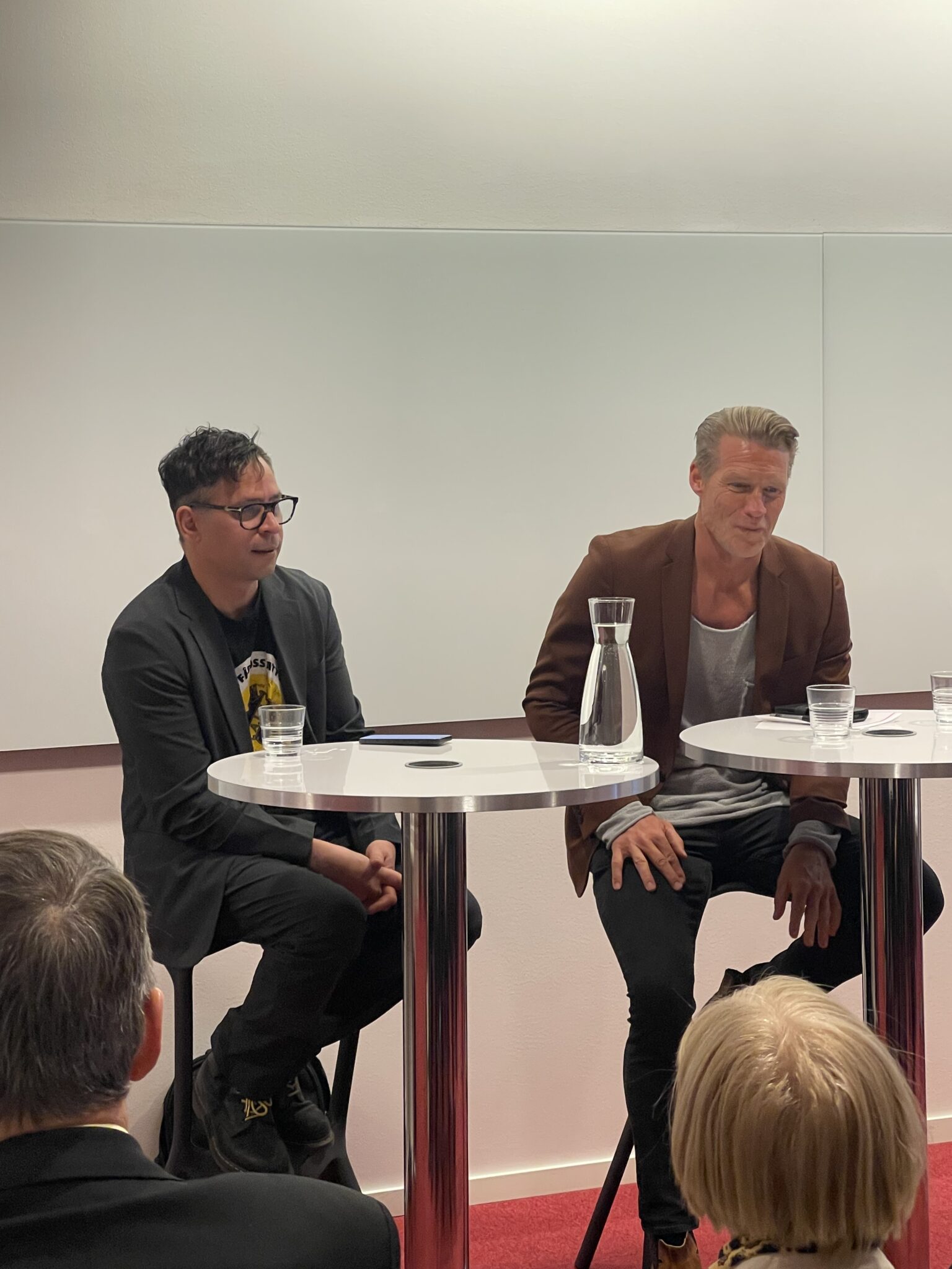 Ikonen Johan Mjällby bjöds in till en föreläsning för att berätta om sin fantastiska karriär. Han blev intervjuad av journalisten och radioprataren Martin Wicklin.
