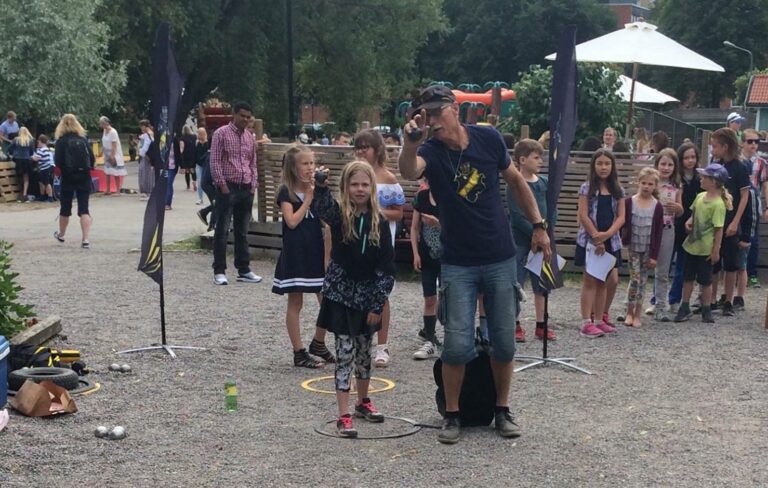 Över 200 sommarlovshungriga barn provar boule, när Solna Stad arrangerar Sommarlovsfest i Skytteholmsparken. I hjärtat av firandet finns AIK Ungdomsboule.