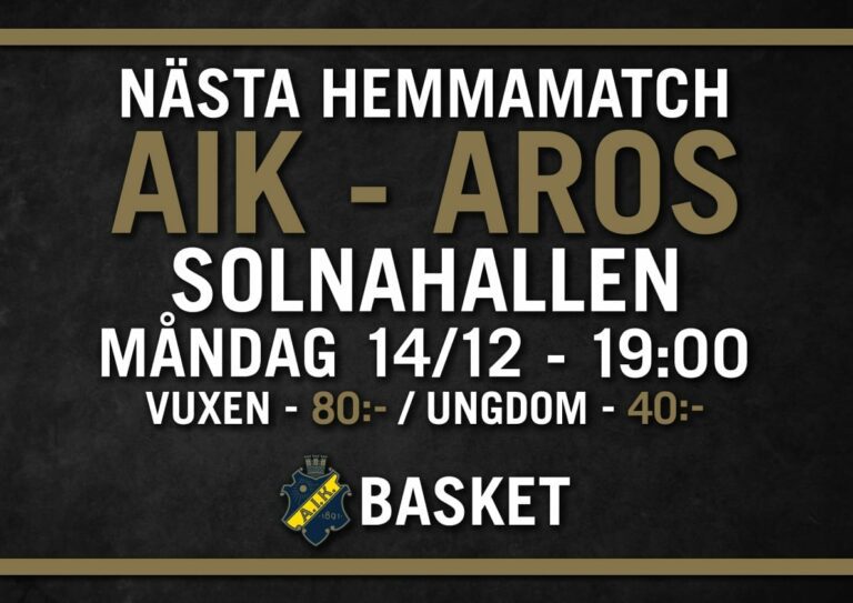 Ytterligare en seger, den elfte raka i ordningen, var på menyn för kvällen då det obesegrade AIK Basket mötte Aros från Västerås. Även denna gång stannade poängen på rekordsiffror då AIK vann med hela 129-39, en segermarginal på otroliga 90 poäng. AIK:s dominans var total matchen igenom och det syntes att ett av lagen hörde hemma på en högre nivå spelmässigt.