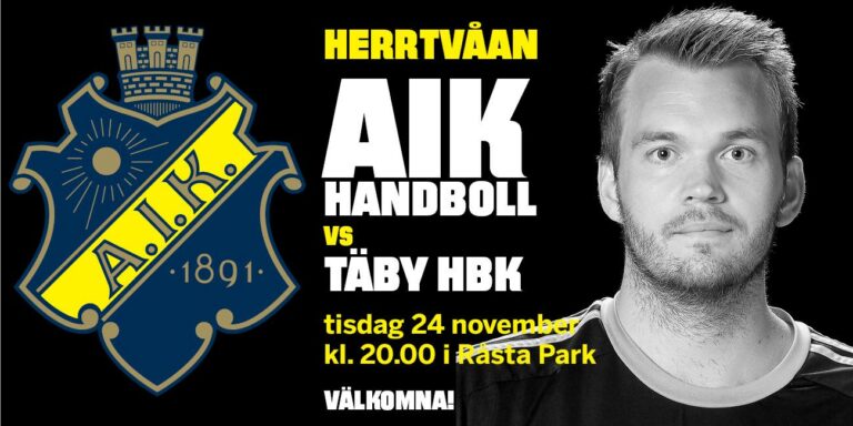 Tisdag 24/11 kl. 20:00 tar AIK Handbolls herrlag emot serietvåan Täby i Råsta Park