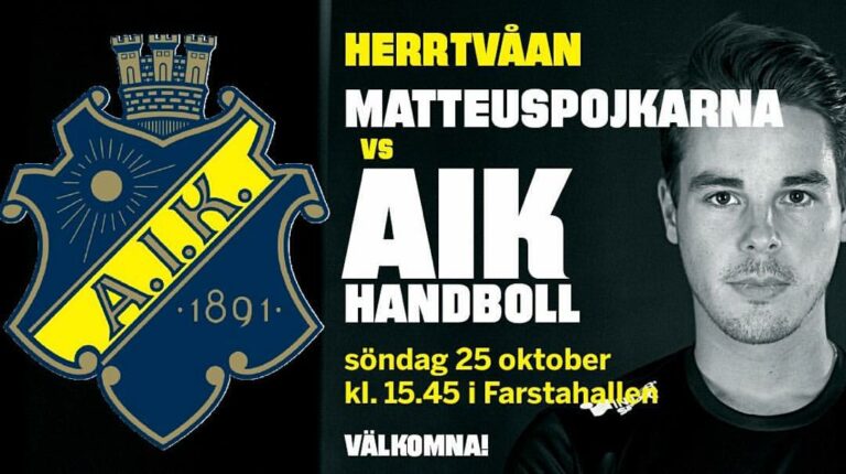 AIK Handbolls herrlag spelar mot MP borta i Farstahallen nu på söndag 25/10 kl. 15:45.